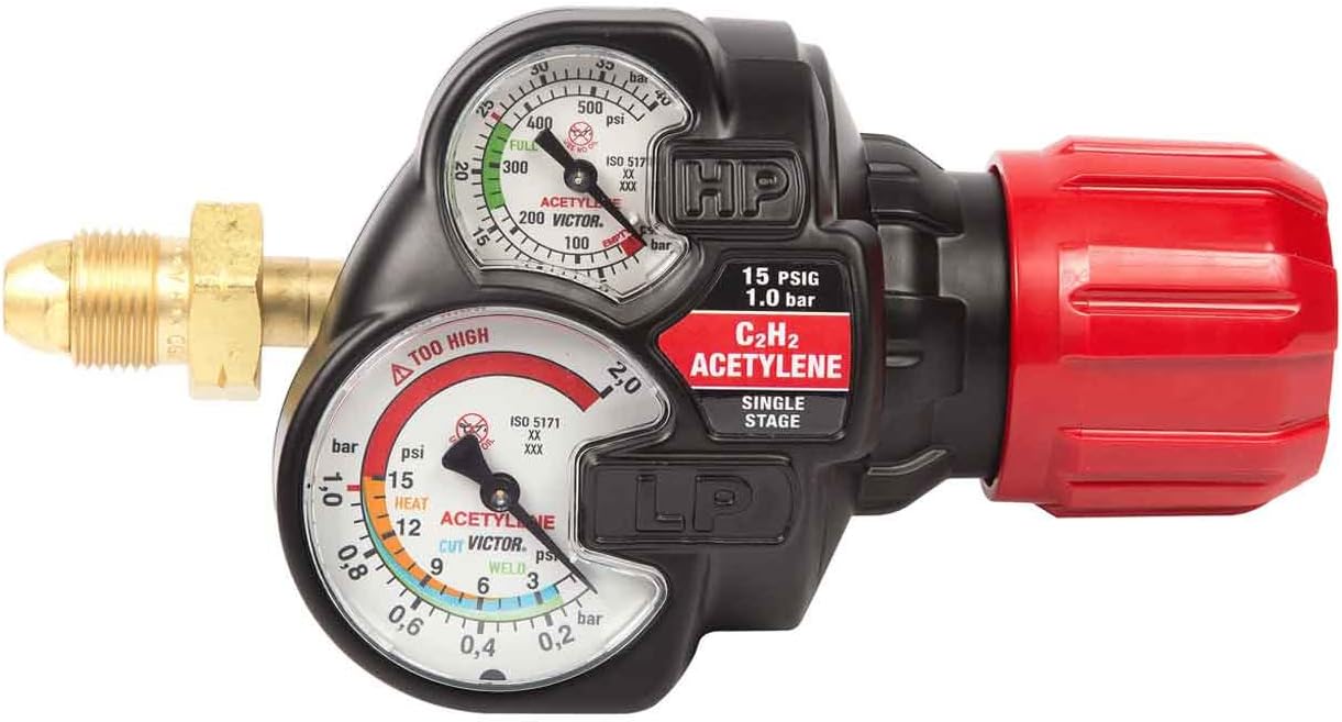 The Victor 0384-2111 Journeyman II EDGE 2.0 Outfit includes a variety of components for cutting, welding, and heating tasks. This heavy-duty kit comes with CA 2460+ cutting attachment, WH 315FC+ welding handle, a cutting tip, a tip cleaner, a striker, goggles, a hose, a welding nozzle, and two EDGE 2.0 regulators. It can cut up to 8 inches and weld up to 3 inches with the proper accessories.