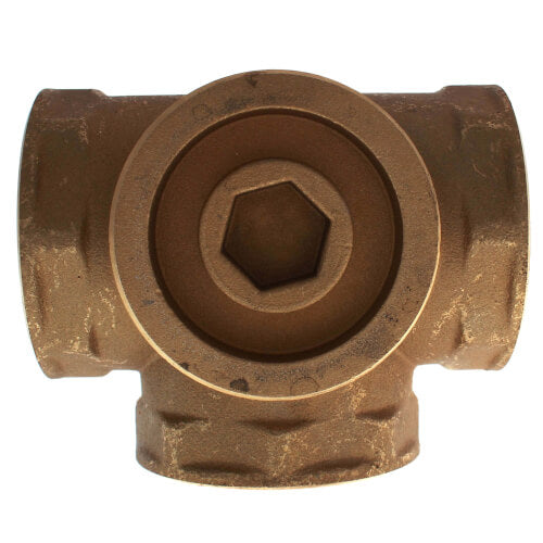 The Tekmar Controls 713 is a 1-1/2 inch brass 3-way mixing valve designed for hydronic heating systems. This valve is used to blend supply water from a heat source with water that returns from a system. It functions well in both closed loop and open loop systems.