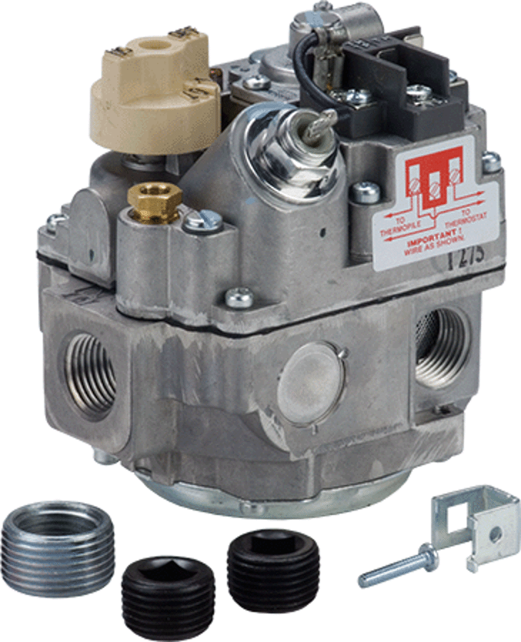 The Robertshaw 700-504 is a gas valve intended for managing natural gas flow in heating systems. This millivolt gas valve supports gas appliances requiring a maximum capacity of 240,000 BTU. It features a 1/2-inch inlet and a 3/4-inch outlet for efficient gas control, designed to provide reliable operation in various HVAC applications.