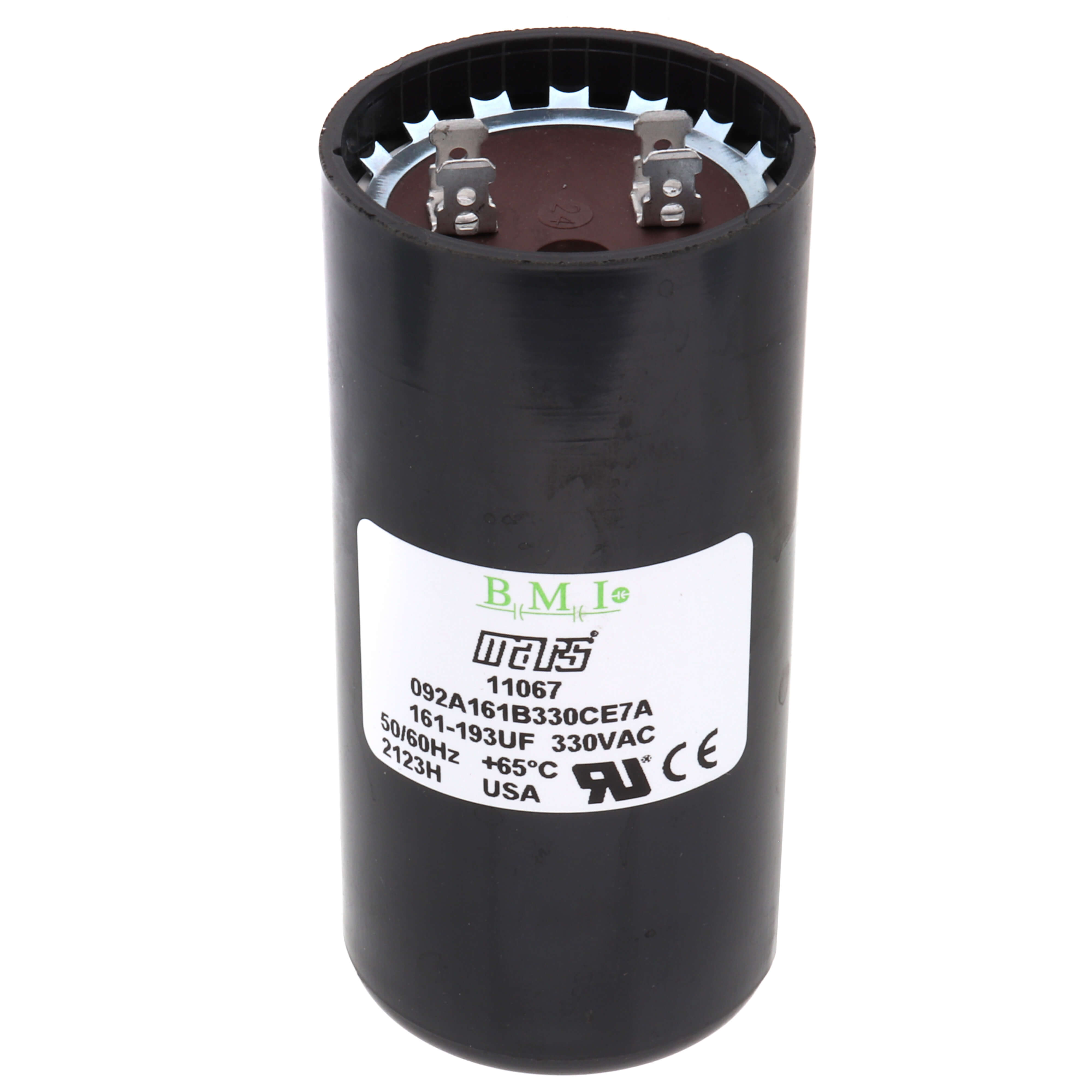 The MARS 11067 is a motor start capacitor with a capacitance of 161 to 193 microfarads and a voltage rating of 330 volts. This round capacitor is designed for use in HVAC systems, providing reliable starting performance for motor applications.