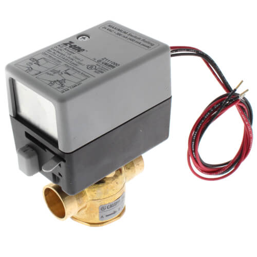 The Caleffi Z45 is a 24V 3/4-inch sweat zone valve with a 7.5 Cv capacity and 20 PSI auxiliary switch. This valve features 18-inch leads and replaces the Z411537 model. It is designed for applications requiring automatic water flow control or redirection in hydronic systems.