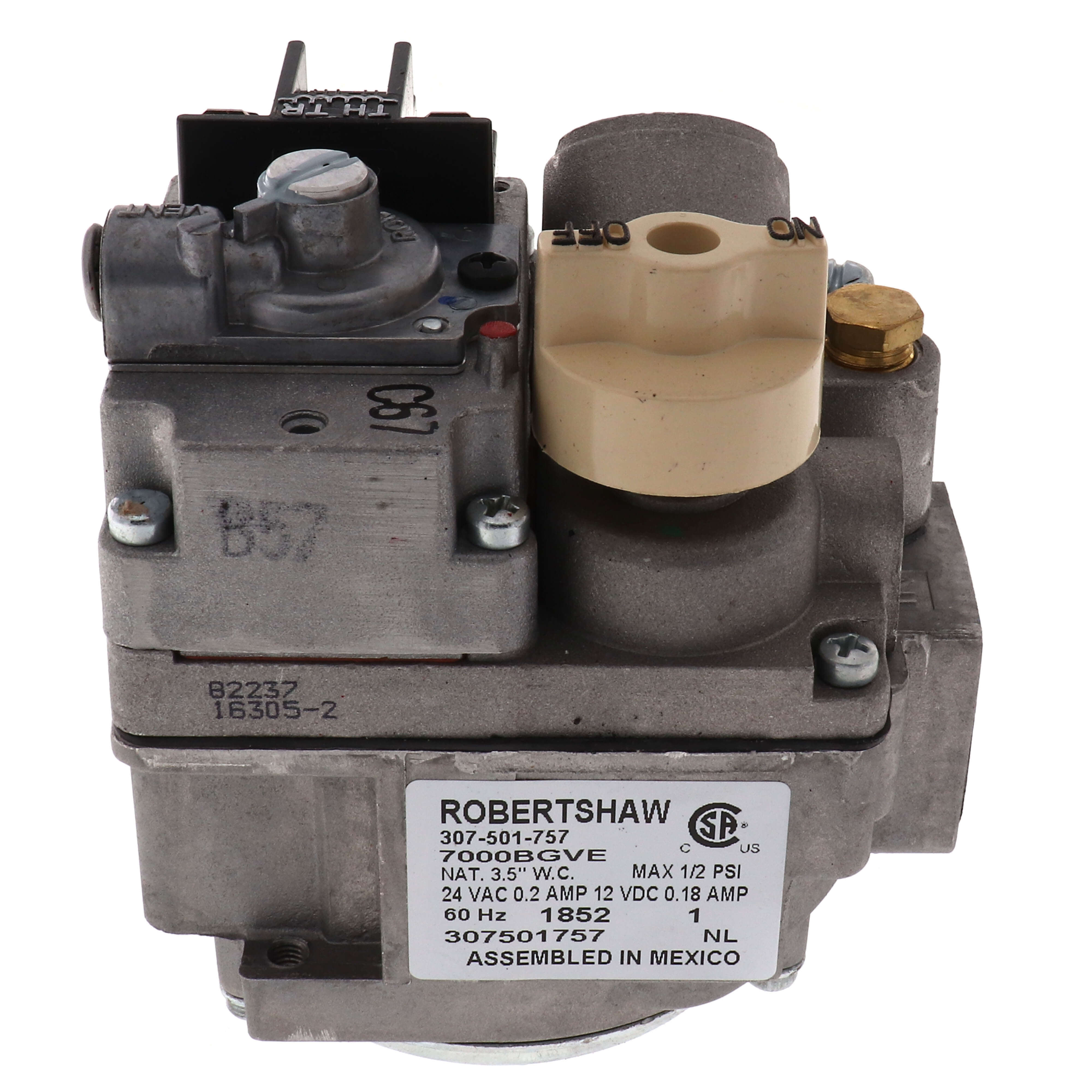 The Robertshaw 700-424 is a 3/4-inch diaphragm gas valve designed for 24 volts. It operates at a pressure of 3.5 inches water column and does not include a magnet. This valve is suitable for commercial and industrial applications, providing reliable gas control.