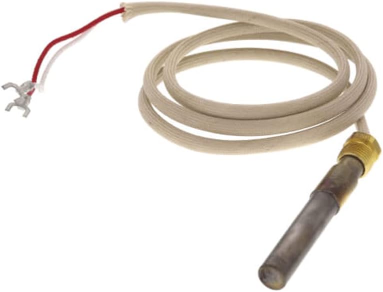This thermopile measures thirty-six inches and is built with a stainless steel outer jacket to withstand high temperatures and prevent heat blistering. It features a copper and nickel alloy element for superior conductivity and includes a Mica washer to prevent shorting. Perfect for gas appliances requiring reliable temperature sensing.