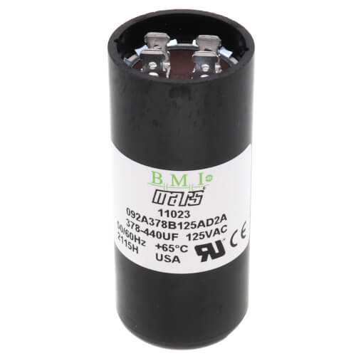 The MARS 11023 is a motor start capacitor designed for HVAC applications. This capacitor operates at a voltage of 110 to 125 volts and has a capacitance range of 378 to 440 microfarads. It features a round phenolic case, making it suitable for various AC and heating systems.