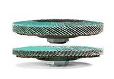 The flap disc 577F offers versatility for various applications including grinding, blending, and finishing metals.