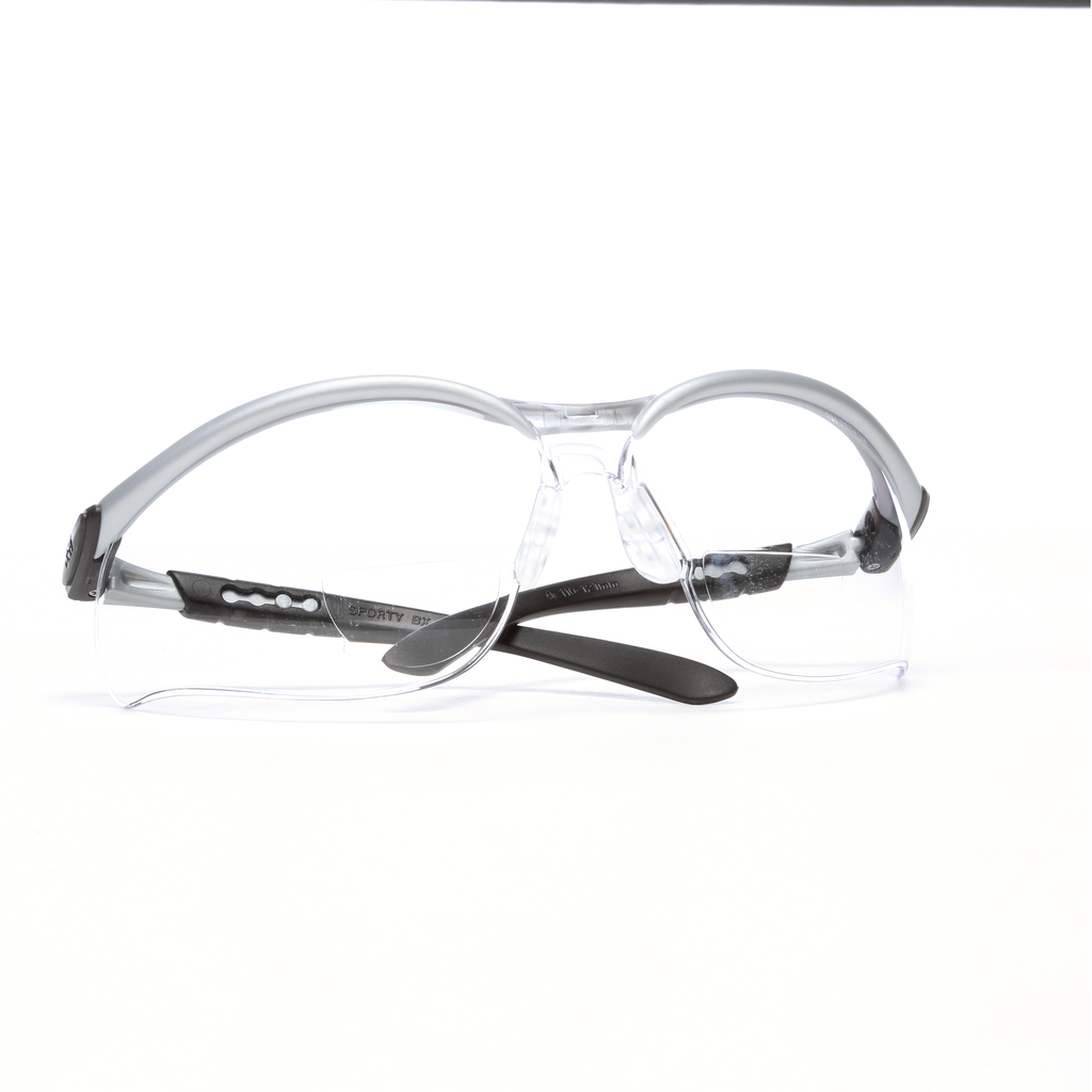 The 3M Industrial Safety 11376-00000-20 features a silver frame and a clear lens design specifically intended for detailed work tasks. This protective eyewear has a magnifying power of 2.5 diopters, making it ideal for workers who struggle with small print.