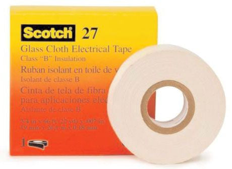 The 3M 27-1/2INX66FT is a glass cloth electrical tape designed for insulation and protection in various electrical applications. This tape measures sixty-six feet in length and one half inch in width, making it suitable for a range of tasks. It is made from a durable glass cloth backing and features a thermosetting rubber adhesive.
