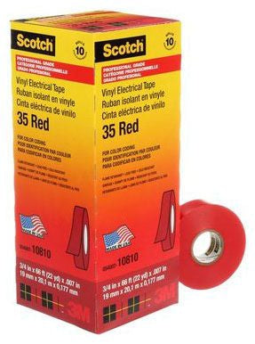 The 3M 35-RED-3/4 is a high-quality electrical tape ideal for insulating, color coding, and marking. This tape is effective for protecting motor leads and electrical conductors rated at six hundred Volts. It features a PVC backing and rubber resin adhesive, delivering reliable adhesion on various surfaces.