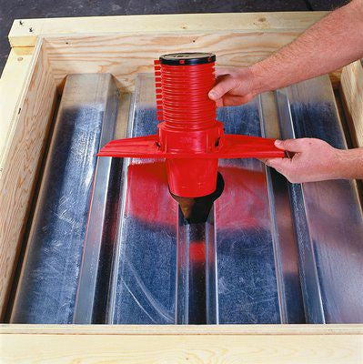 The 3M fire barrier cast-in device, MPN 6MCID, is designed for metal pipes. This device provides effective fire stopping for six-inch penetrations through fire-rated concrete floor assemblies. Instead of drilling holes, it is mounted directly to floor decking. This simplifies installation and maintains structural integrity.