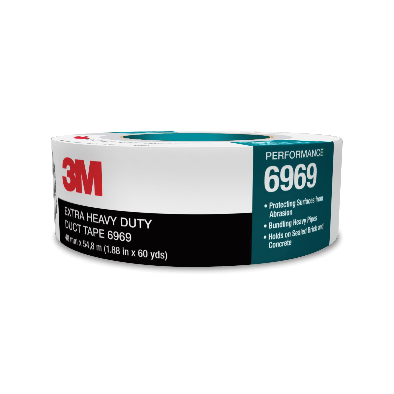The 3M Extra Heavy Duty Duct Tape, MPN 7000001231, is designed for demanding applications. This tape measures fifty-four point eight meters in length and seventy-two millimeters in width, with a thickness of ten point seven mil. It features a strong rubber adhesive and a backing made of polyethylene film over cloth scrim. This design offers superior durability and ease of use.