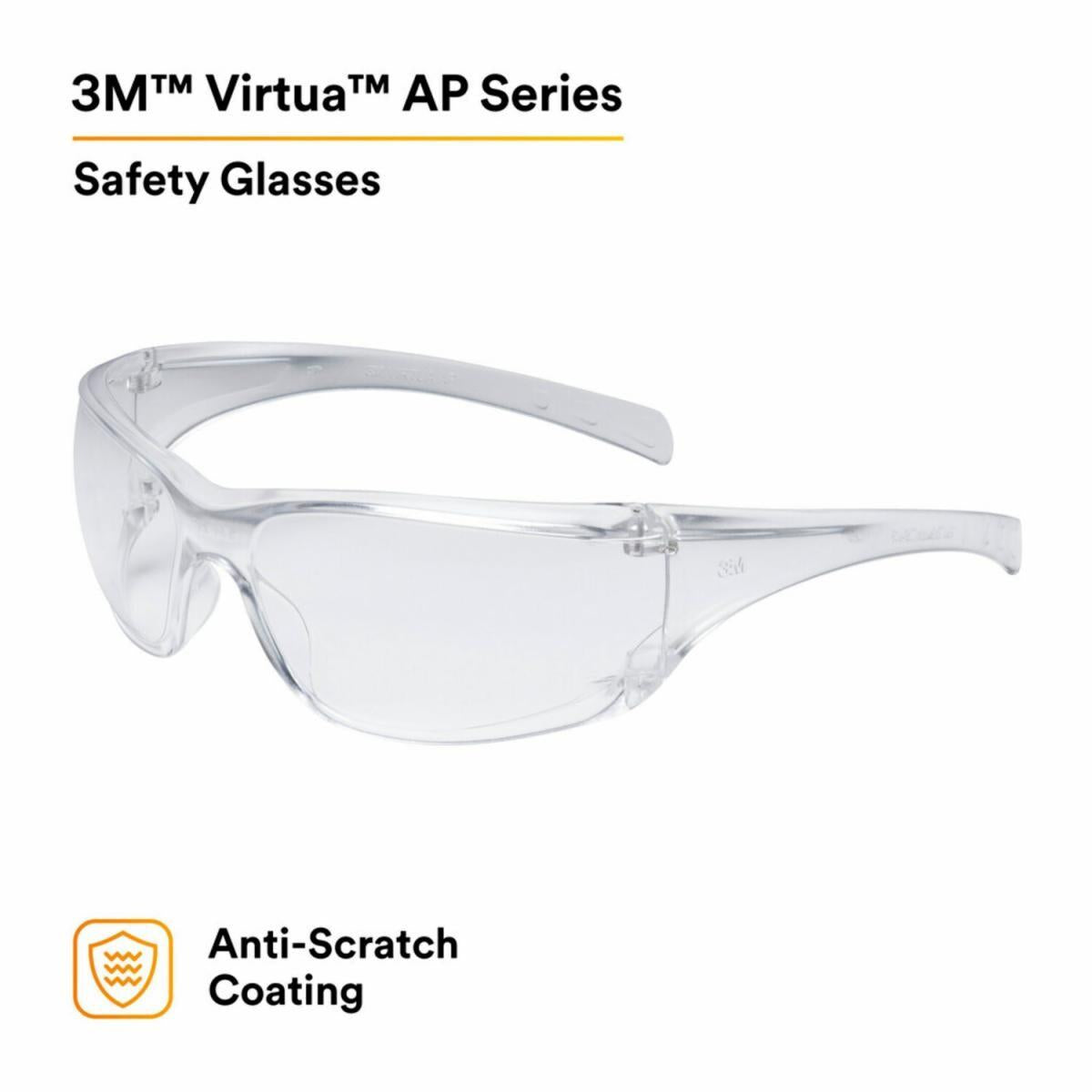 The 3M Virtua 7000030054 Eyewear is designed for safety and comfort. These safety glasses feature a frameless design with a clear polycarbonate lens coated for anti-scratch protection. Ideal for various work environments, this eyewear meets safety standards ANSI Z87.1-2015 and CSA Z94.3.