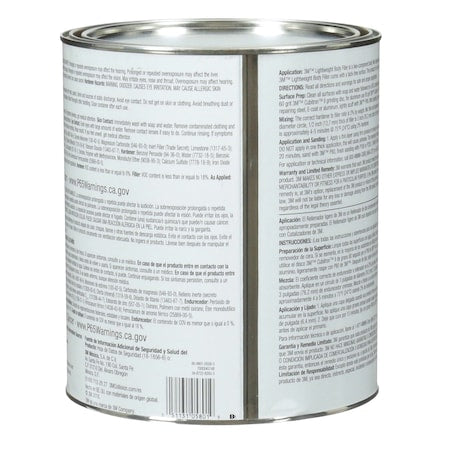 The 3M Lightweight Body Filler Kit 7000045748 is designed for automotive use, offering a 1-gallon capacity suitable for repairing dents and surface imperfections. This kit includes both the filler and hardener, providing a complete solution for body repair needs.
