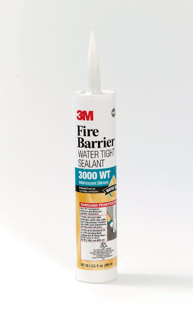3M Fire Barrier Water Tight Sealant 3000 WT is an intumescent silicone sealant that provides fire protection for up to four hours. It is a gun-grade sealant that cures when exposed to air, forming a flexible firestop seal. This sealant helps prevent the spread of fire, smoke, and harmful gases. It adheres to various construction materials.