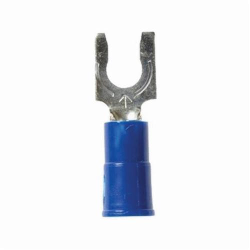 The 3M Vinyl Insulated Locking Fork Terminal, MPN 7010350241, is designed for secure connections in electrical applications. This terminal has a spring-like tongue that locks tightly around the stud, ensuring a strong connection.