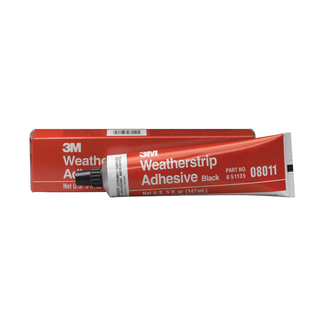 The 3M 7010362993 Weatherstrip Adhesive bonds rubber gaskets and weather stripping to metal surfaces. This black adhesive comes in a 5 oz tube and ensures a tight waterproof seal for car doors, trunks, sunroofs, and more. The adhesive cures in 24 hours and resists heat, vibration, oils, and detergents.