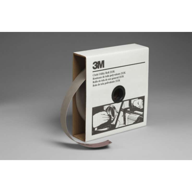 3M Utility Cloth Roll 7100031693 is a light J-weight cloth abrasive designed for general maintenance tasks. This roll measures one and one-half inches in width and fifty yards in length. It features a closed coat aluminum oxide abrasive, designed for various applications, including metal finishing, rust removal, and surface prep for paints.