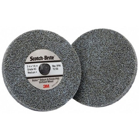 The Scotch-Brite 7100081365 Roloc Deburr and Finish PRO Unitized Wheel offers high performance for your deburring and finishing needs. This 3-inch diameter wheel operates at a maximum speed of 15100 RPM, making it suitable for intensive applications.