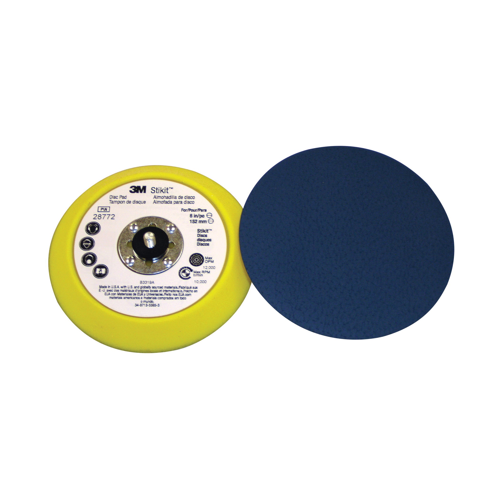 The 3M Stikit 7100114993 Disc Pad is a five-inch diameter pad designed to hold 3M Stikit discs for various sanding applications. This pad is compatible with disc, random orbital, and rotary sanders, providing versatility in its use. The pad features a vinyl face that allows quick and easy attachment and removal of discs.