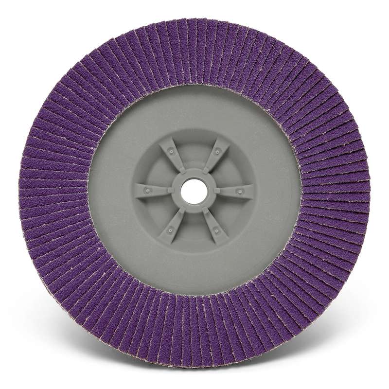 The 3M Flap Disc 769F is an abrasive disc designed for high performance and versatility. The MPN is 7100177902. Built with 3M Precision-Shaped Grain, this disc lasts longer and cuts more efficiently than standard aluminum oxide and alumina zirconia options. This product offers excellent value, helping users reduce costs while improving productivity.