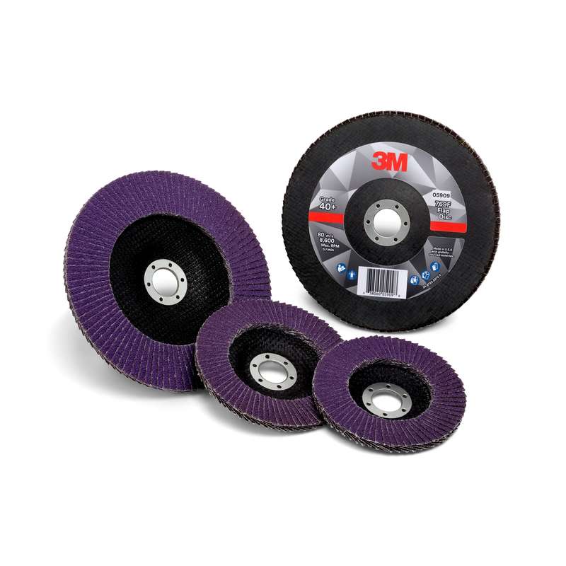 The 3M™ Flap Disc 769F, MPN 7100178192, is designed for durability and performance in a variety of grinding applications. This disc integrates 3M Precision-Shaped Grain for enhanced longevity and cutting speed compared to standard aluminum oxide and alumina zirconia discs. The flap disc is well-suited for tasks requiring high output without sacrificing quality.
