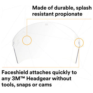 This faceshield is part of the 3M W Series, which is known for its durability and user-friendly setup.
