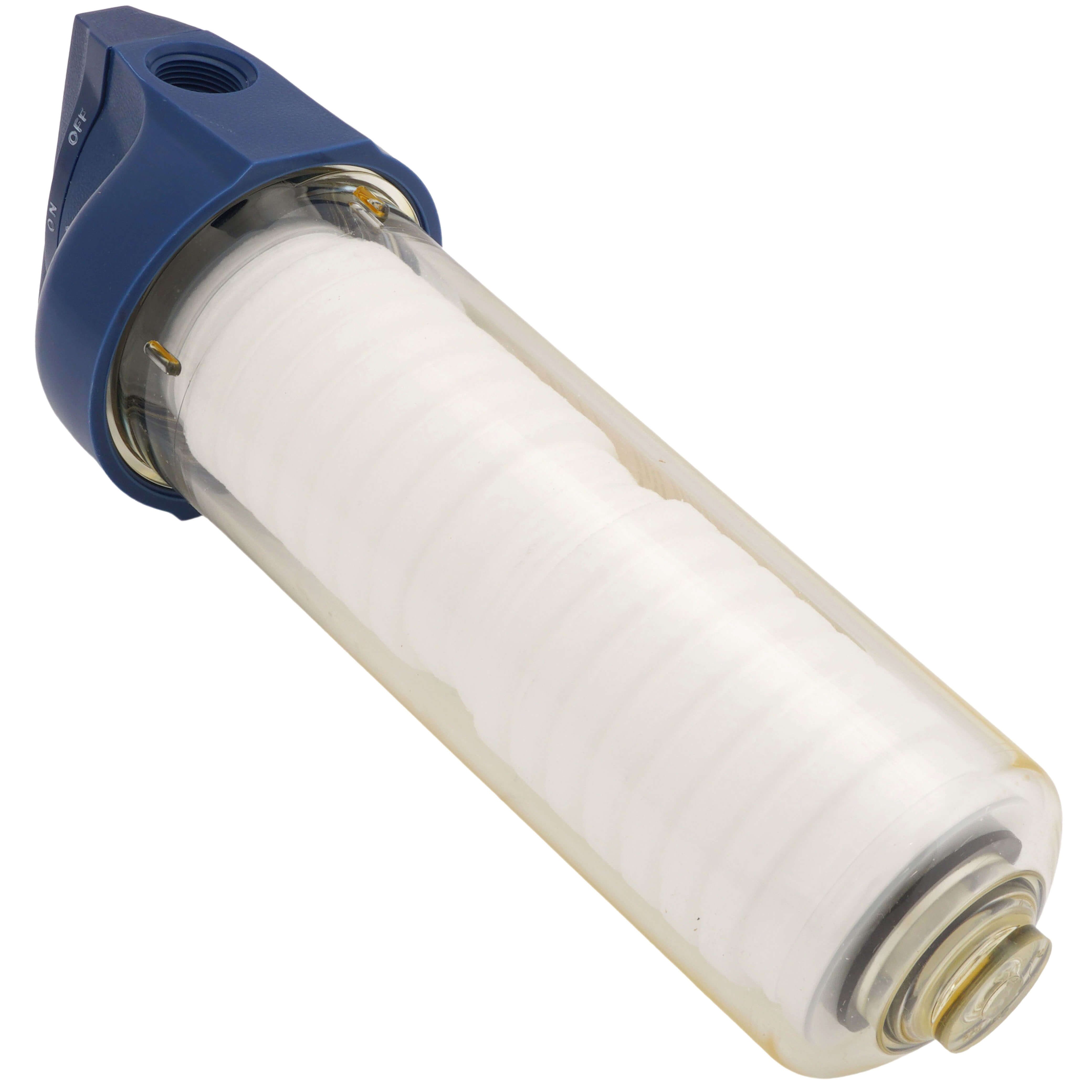 This filtration system supports industry-standard replacement cartridges, ensuring a custom fit for various applications. Replacing the filter cartridge every four to six months keeps the system performing optimally.