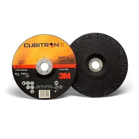 The 3M 7100094062 Cubitron II Depressed Center Grinding Wheel is designed for heavy grinding and weld removal. It features precision shaped ceramic grain for fast cutting and long-lasting performance. Specially formulated for use on stainless steel and mild steel.