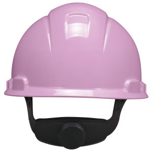 The 3M H713R is a pink, short brim hard hat that features a 4-point ratchet suspension system. This hard hat allows wearers to customize the height and fit, offering comfort and safety on the job. It meets ANSI/ISEA Z89.1-2009 Type 1, Class C, G, and E requirements.