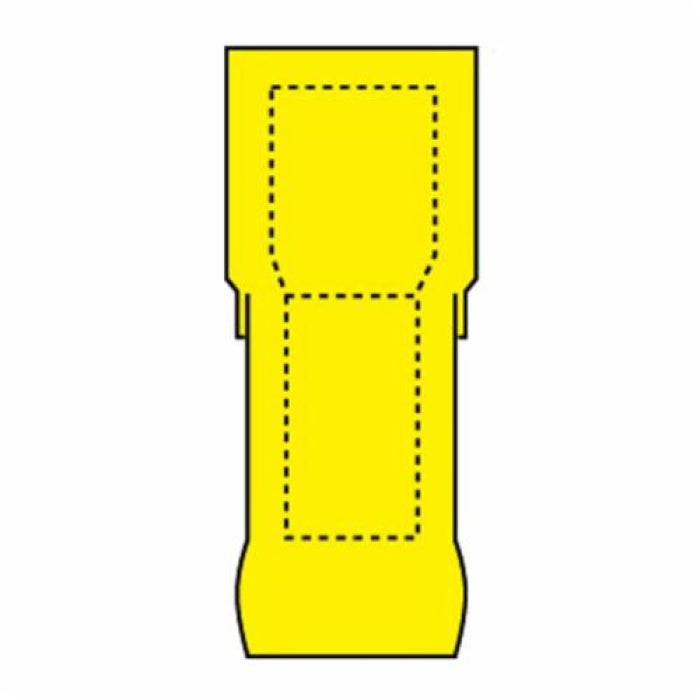 The 3M MNGI10-250DFX is a standard female disconnect terminal designed for insulated connections. It accommodates wire sizes from twelve to ten AWG. This terminal features a one-fourth inch tab, making it compatible with various applications. Its interlocking barrel design provides reliability during use and allows for a quick disconnect option. The terminal is made with ETP copper, ensuring optimal electrical conductivity while the yellow insulation offers visibility.