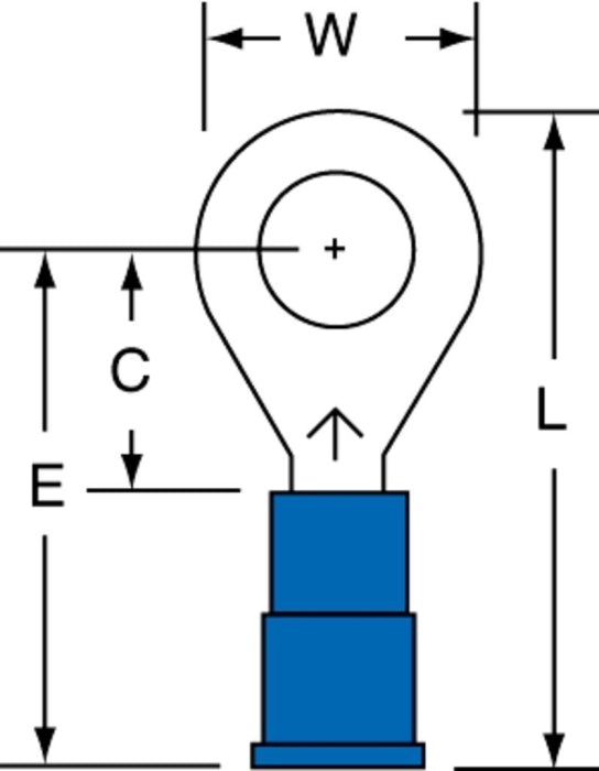3M MV14-14R/SX Scotchlok Insulated Standard Ring Terminal is made for 16 to 14 AWG conductors. It features a brazed seam barrel and a reliable blue vinyl insulation.