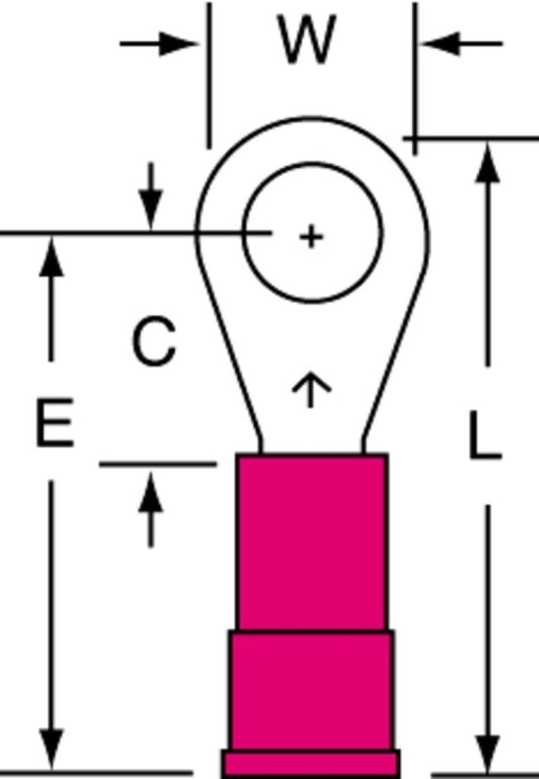 The 3M Scotchlok Insulated Standard Ring Terminal, MPN MV18-10R/LX, is designed for reliable electrical connections. This terminal accommodates wire sizes from twenty-two to eighteen AWG. It features a brazed seam barrel and a color-coded design for easy identification.