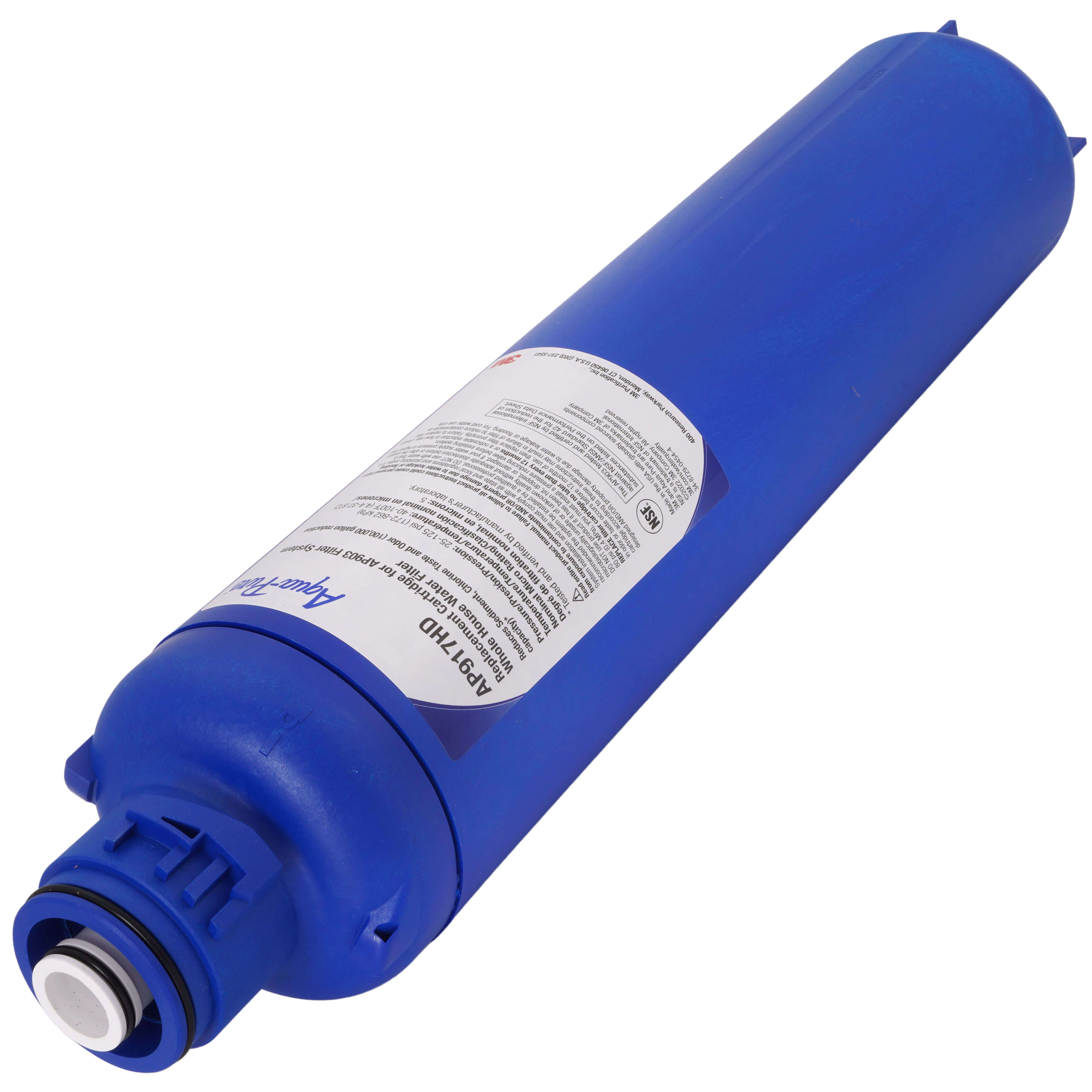 The Aqua-Pure AP917HD Under Sink Replacement Filter Cartridge, MPN 5621006, is designed for filtration systems that require a reliable replacement option. This product has a maximum flow rate of twenty gallons per minute, ensuring effective filtration. It features a five-micron rating, which helps to reduce chlorine taste, odor, dirt, and rust, providing clean water for your needs.