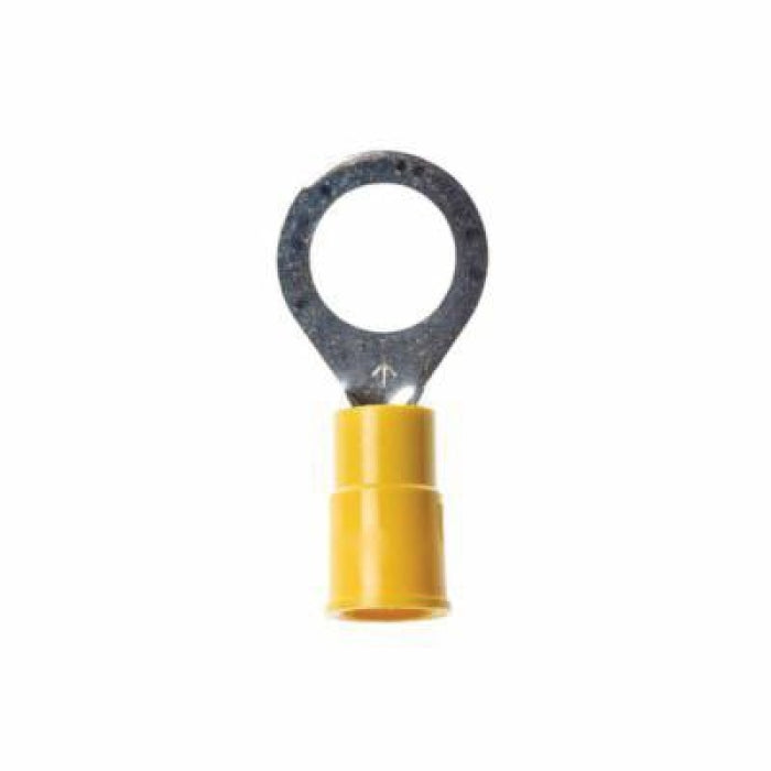 The 3M RV10-516Q ring terminal is designed for electrical connections requiring secure and reliable contact. This terminal is suitable for conductors ranging from twelve to ten American Wire Gauge (AWG). It features a butted barrel design that promotes a smooth and stable connection.