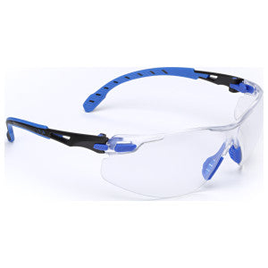 3M Solus 1000-series safety glasses, MPN S1101SGAF-KT, provide protection for eyes in various work environments. The kit includes safety glasses with clear lenses, Scotchgard Anti Fog coating, an elastic strap, and a removable foam gasket. This design helps maintain clarity in the workplace.