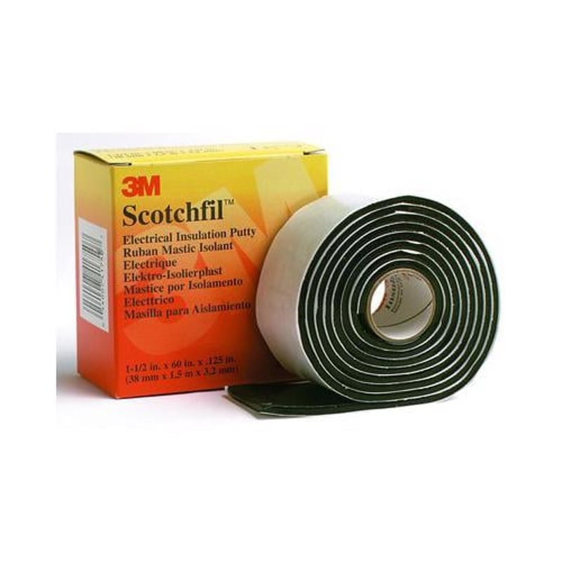 The 3M Scotchfil Electrical Insulation Putty, MPN SCOTCHFIL-PUTTY, is designed to insulate various irregular surfaces, including fittings and valves. This tape-like putty offers versatility with its ability to stretch and conform to shapes, making it suitable for encapsulating electrical connections. It insulates connections rated up to six hundred volts, ensuring reliable performance for electrical installations.
