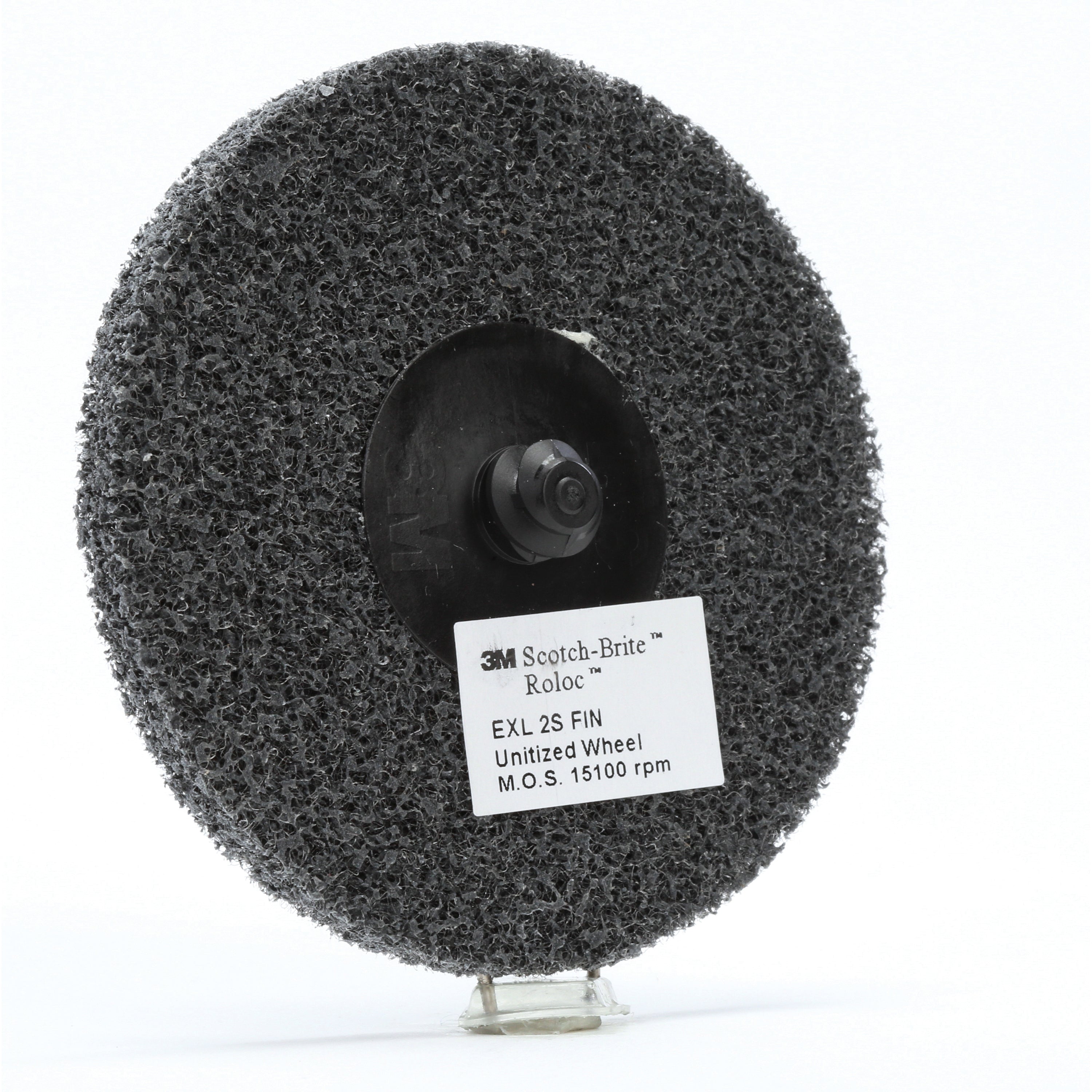 The 3M 7100005209 EXL Unitized Wheel features high-performance, soft densities for conformability and flexibility, making it suitable for finishing flat and contoured surfaces. Its quick-release system ensures easy disc changes, while the open web material keeps the wheel cool, reducing the risk of part discoloration and warping.