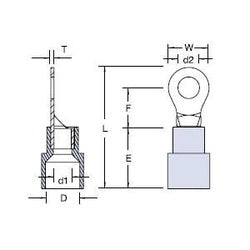 The ABB 14RB-38 is a reliable insulated ring terminal designed for wires ranging from eighteen to fourteen AWG. This terminal features a three-eighth inch stud and is made of copper with a tin plating for added corrosion resistance. It has a length of one point sixteen inches and is ideal for secure wire connections in various electrical applications.