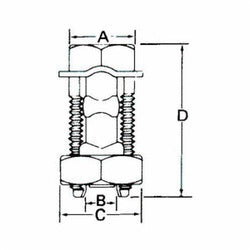 The ABB 1HPS Blackburn Split Bolt Connector is designed for electrical applications involving ACSR, solid, and stranded aluminum or copper conductors. This connector supports conductor sizes from eight to one AWG. It features an 11/16 inch by 1-5/8 inch bolt size and a split size of 0.33 inches. The connector is made from a copper alloy and electro-plated with tin for enhanced corrosion resistance.