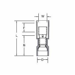 The ABB TNF14-4FB-XV is a fully insulated nylon female bullet disconnect designed for wire sizes ranging from sixteen to fourteen AWG. It features a bullet diameter of zero point one five three inches and an overall length of zero point nine nine two inches. The disconnect can handle a voltage of six hundred volts, making it suitable for various electrical applications.