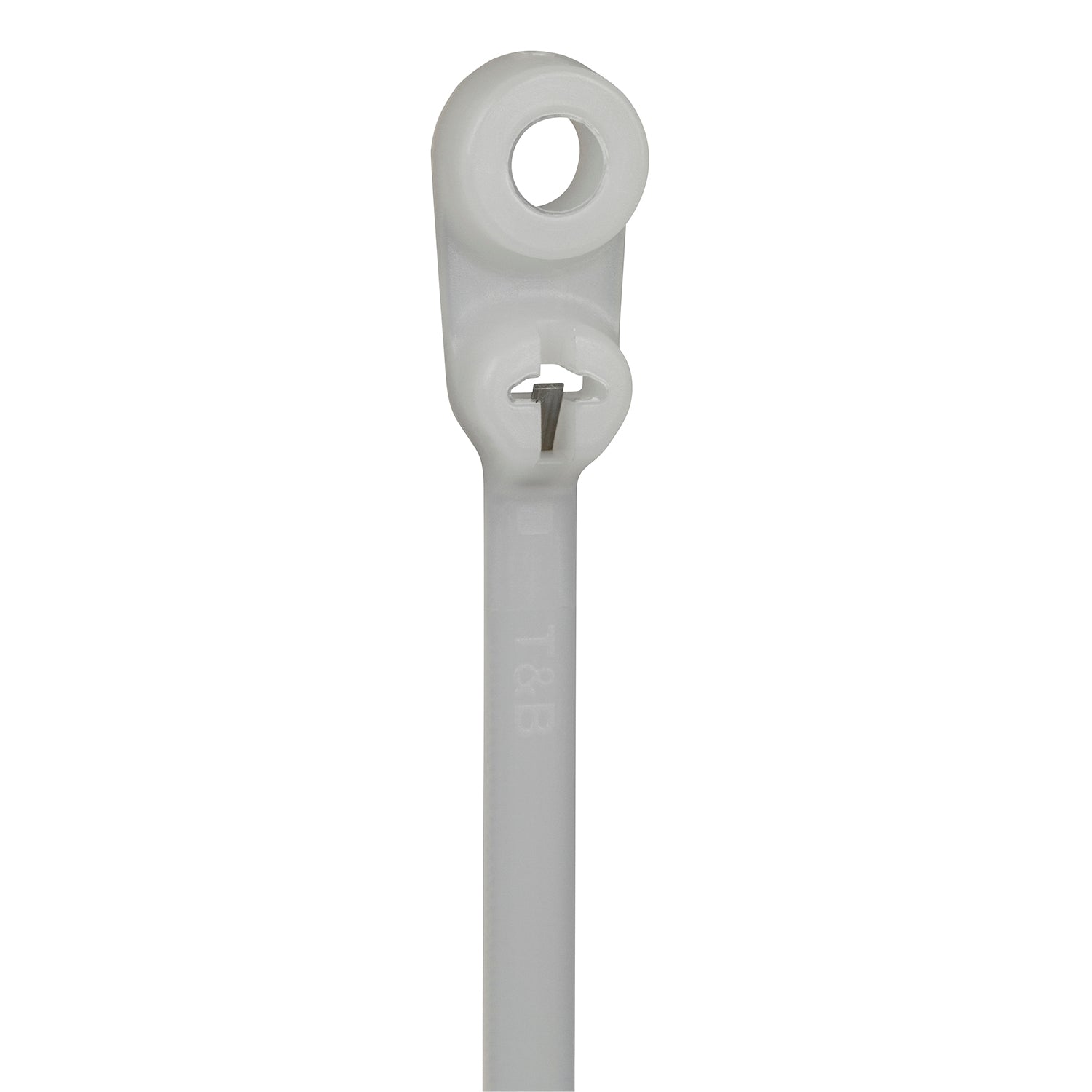 ABB TY535M is a cable tie designed for secure bundling and fastening. It features an integrated mounting hole and is made from natural polyamide (Nylon 6.6). This tie works in temperatures up to eighty-five degrees Celsius, making it suitable for indoor use. With a length of seven point eight inches and a width of zero point eighteen inches, it has a tensile strength of fifty pounds.