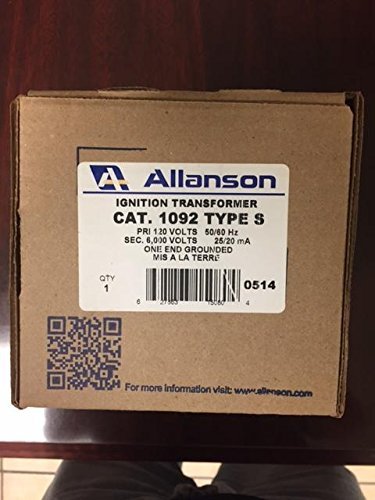 The Allanson 1092-S gas burner ignition transformer provides reliable ignition for gas burners. This transformer features an input voltage of one hundred twenty volts and an output of six thousand volts. Built to meet demanding specifications, it is suitable for applications involving Gordon Piatt burners and others.