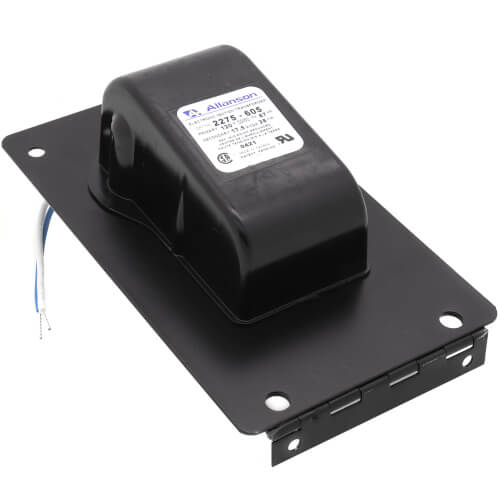 The Allanson 2275-605 is a solid state ignition transformer designed for Becket S burners. This transformer operates at a primary voltage of one hundred twenty volts and a secondary voltage of seventeen thousand five hundred volts. It is designed to provide reliable ignition and features a mid-point ground. This model meets American and European standards for noise emissions, ensuring minimal electromagnetic interference. The compact design eliminates the need for additional mounting plates, simplifying installation. Under low primary voltage conditions, the open circuit voltage remains stable, making it a reliable choice for various applications.