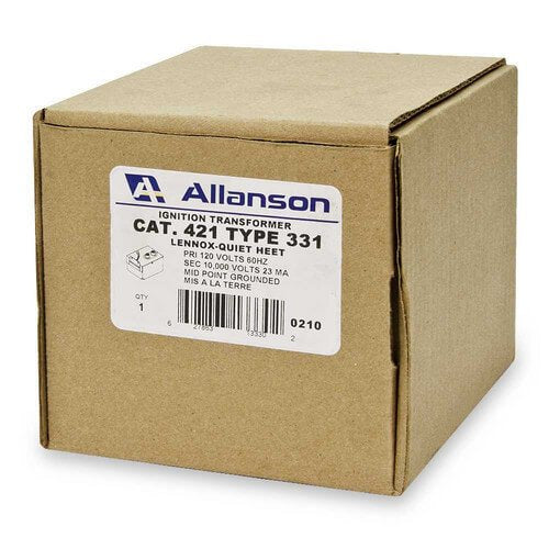 The Allanson 421-331 Ignition Transformer offers dependable ignition for Lennox burners. Its single porcelain design and noise emission standard compliance make it an efficient choice for various burner types.