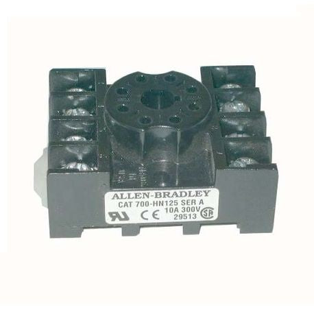 The Allen-Bradley 700-HN125 is a relay socket designed for industrial control applications. This 8-pin, open-style tube base relay socket is suitable for use with various relays. It can handle loads up to 10A at 600V and is broadly applicable in control and automation systems.