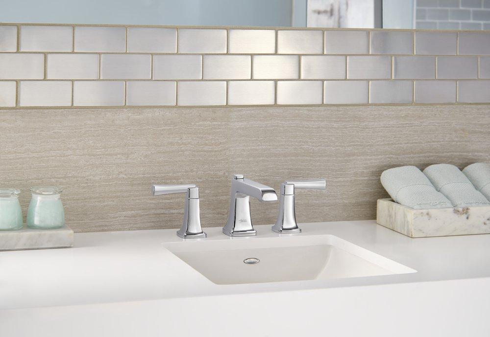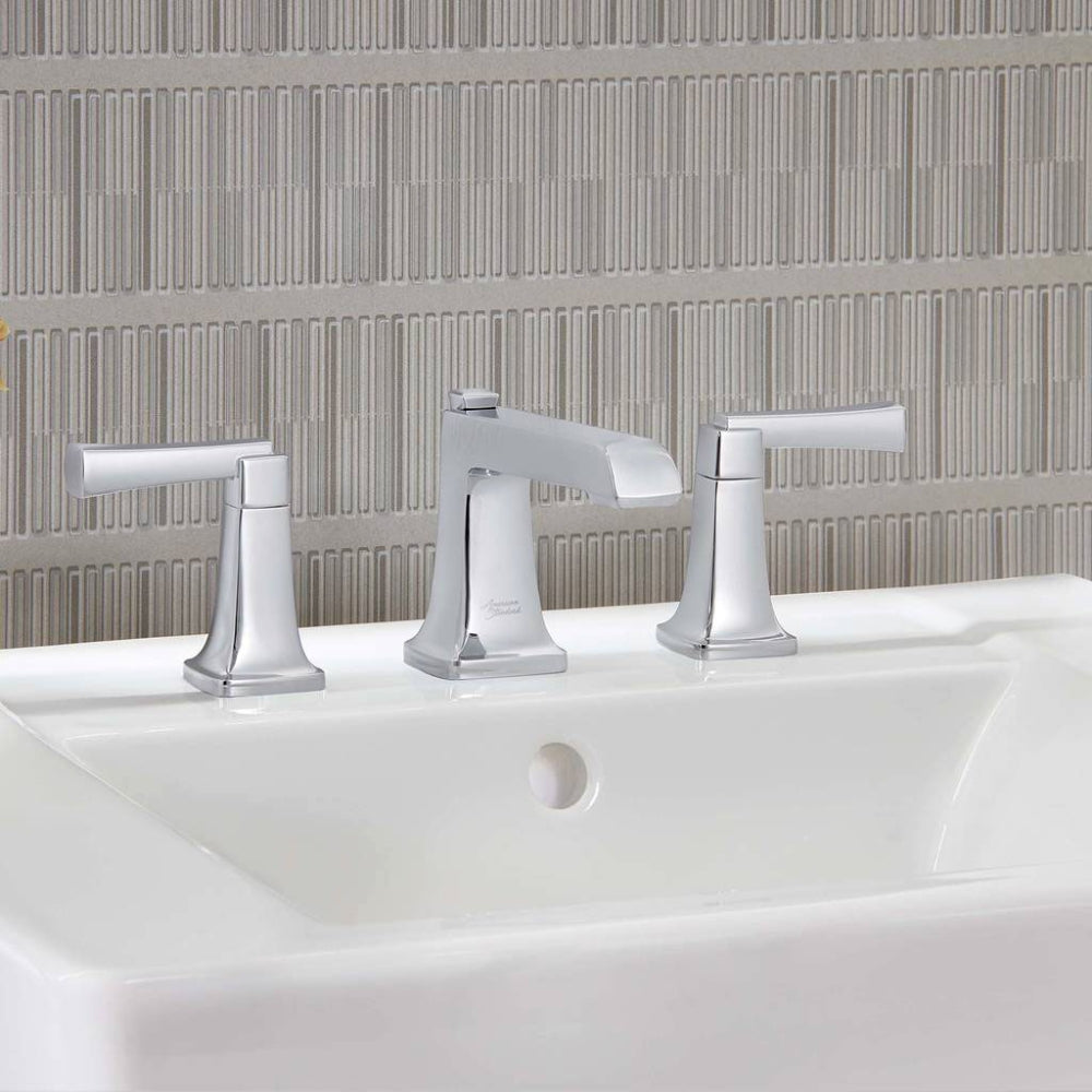 The American Standard Townsend model 7353841.002 is a two-handle widespread bathroom sink faucet. This faucet features a maximum flow rate of 1.2 gallons per minute, promoting water conservation without impacting performance.