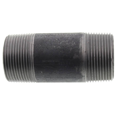 This black nipple is designed for standard plumbing connections, ensuring a reliable fit. It is suitable for Schedule 40 applications and meets ASTM and ASME standards.