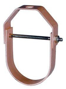 The Anvil Fig CT-65 1-1/2 in. Copper Plated Carbon Steel Clevis Hanger is designed for effective pipe support. This product features an adjustable design that allows for flexibility in installation.