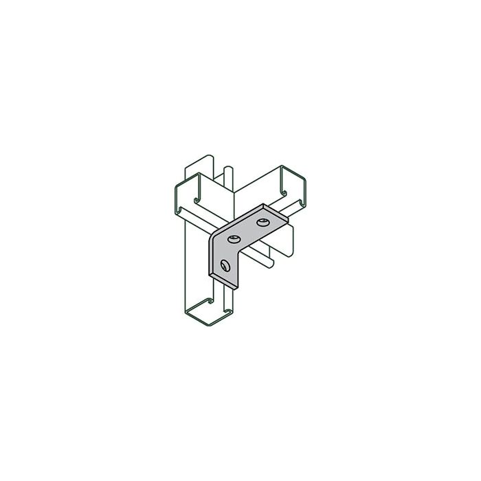 This corner angle is ideal for use in framing systems. It accommodates standard strut channels and offers a strong foundation for mounting purposes.