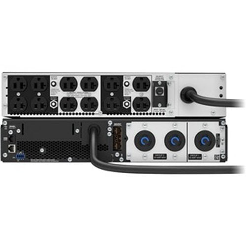The APC SRT3000RMXLT-5KTF is a Smart-UPS with a load capacity of three thousand VA at two hundred eight volts. This model is designed for rackmount installation and takes up four units of space. The unit features LCD display, twelve NEMA five-twenty R outlets, and two NEMA L six-twenty R outlets. A transformer is included, changing two hundred eight volts to one hundred twenty volts.