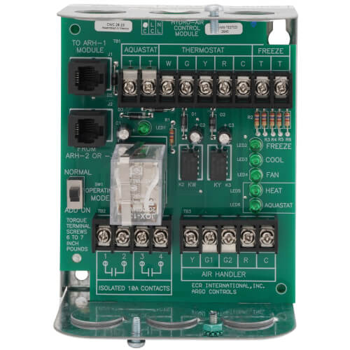 The Argo ARH-1 is a single zone hydro-air control and expansion module. It is designed to connect easily with plug-in connectors for expansion up to 20 zones. This unit supports multiple terminals for two-speed air handlers and includes built-in freeze protection. It also offers priority switching for domestic hot water applications and has LED diagnostic lights to simplify troubleshooting.